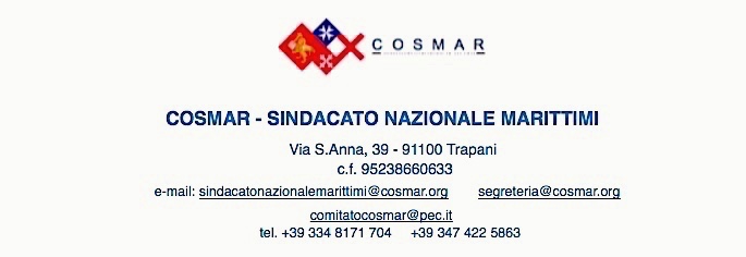 COSMAR – Sindacato Nazionale Marittimi ha eletto, presso la Banbini srl, proprio rappresentante sindacale aziendale RSA il Com.te Sig. Franco Busalacchi e-mail francobusalacchi65@gmail.com